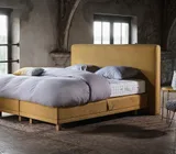 De Pullman Cleveland heeft een robuust hoofdbord met mooi bies. Pullman Cleveland bestaat uit een combinatie van een vlakke of verstelbare Silverline boxspring, Silverline of Goldline matrassen eventueel aangevuld met een comfortabele Comfort Topper van Pullman.